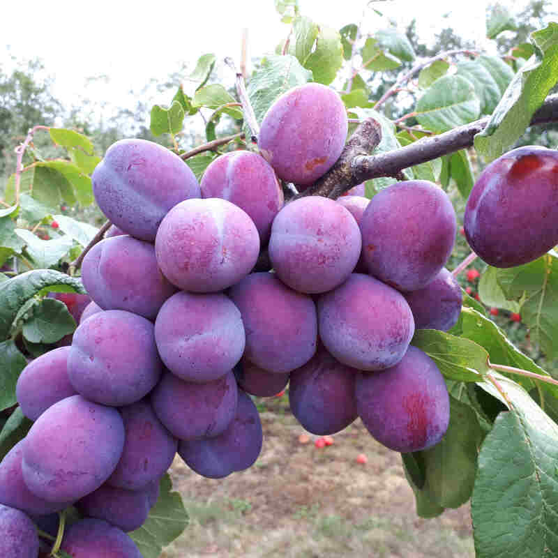 - Den er en krydsning mellem ‘Giant’ og ‘Yakima’, to amerikanske blommesorter kendt for størrelse og smag.