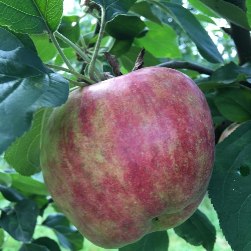 - Æblerne er store, uregelmæssige og stribede, med hvidt, saftigt og aromatisk frugtkød.