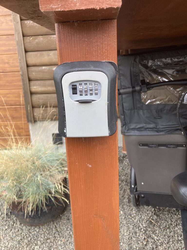 I boksen finder du nøgle til at låse cyklen op samt nøgle til batteri til cyklen. Begge dele lægges tilbage i boksen, når du afleverer cyklen tilbage. Husk at aflevere cyklen indenfor din valgte bookingtid og husk at sætte batteriet til strøm.